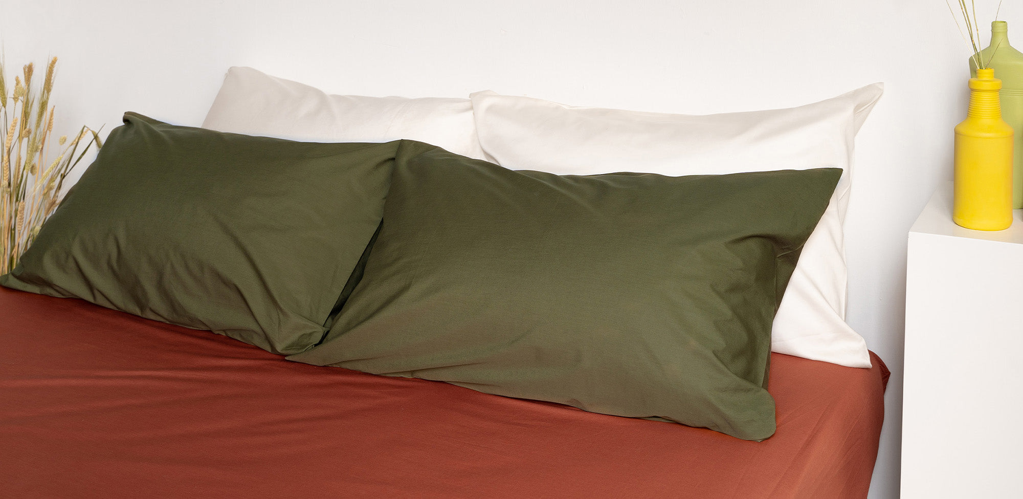 ยกชุดจัดเต็มกับชุดผ้าปูที่นอน ประกอบด้วยปลอกผ้านวม 1 ผืน ปลอกหมอน 1 คู่ และผ้าปูที่นอนแบบรัดมุม 1 ผืนที่มีให้เลือกหลากหลายสี