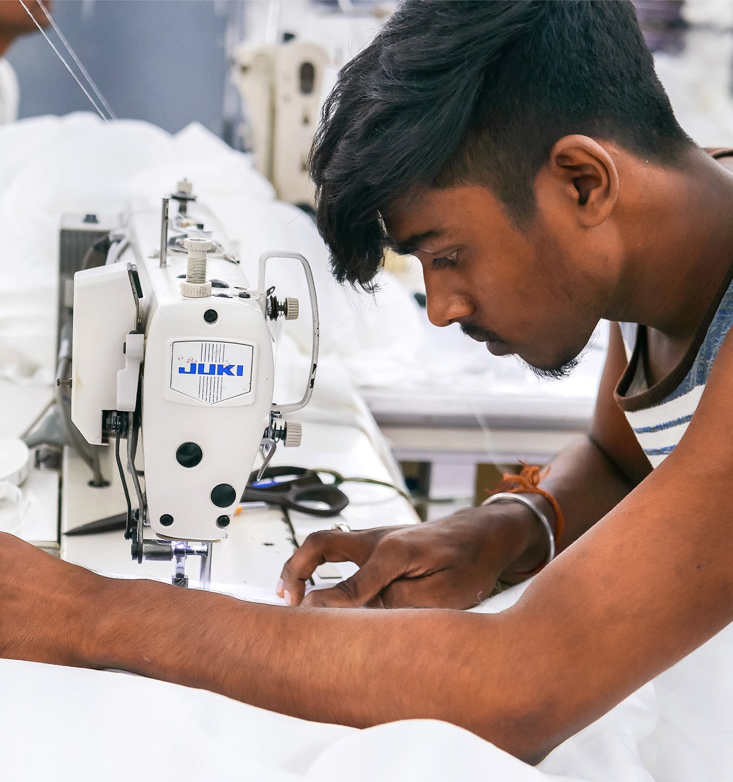 คนงานของเราก็ทำงานกับฝ้ายออร์แกนิกที่ปราศจากสารพิษในสถานที่ทำงานที่ปลอดภัย และปลอดสารเคมีที่เป็นอันตรายในขั้นตอนการผลิต